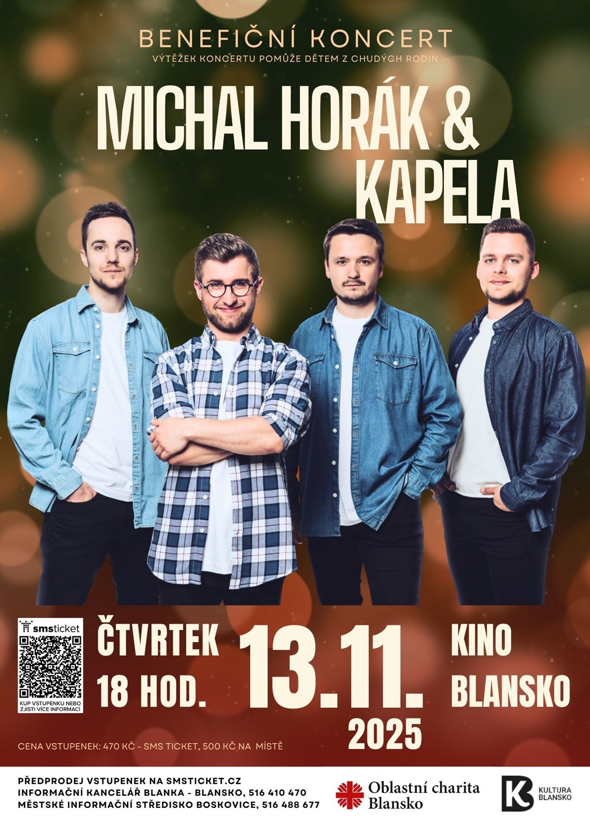Benefiční koncert "Michal Horák & kapela" ve čtvrtek 13.11.2025 v 18 hodin - kino Blansko.