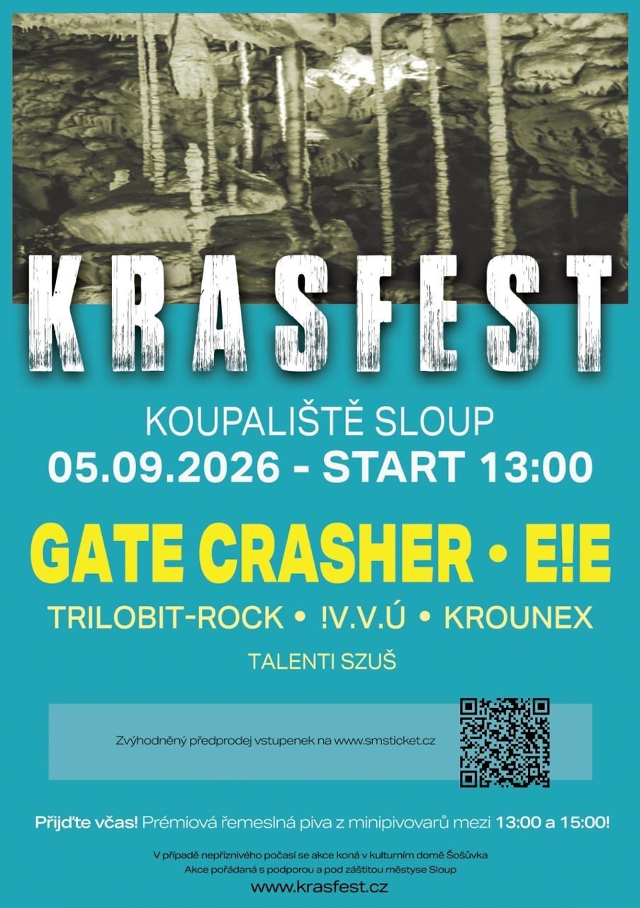 Krasfest - již 6.ročník multižánrového hudebního festiválku (rock, punk) v krásném areálu Koupaliště ve Sloupu, srdci Moravského krasu.