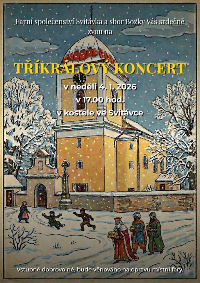 Farní společenství Svitávka a sbor Bozky Vás srdečně zvou na Tříkrálový koncert, který se koná v neděli 4. ledna 2026 od 17:00 v kostele ve Svitávce. Vstupné dobrovolné